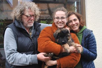 Eyco with his new family. His new home will