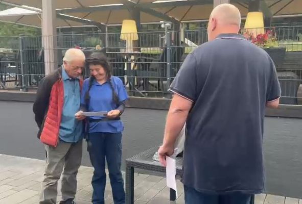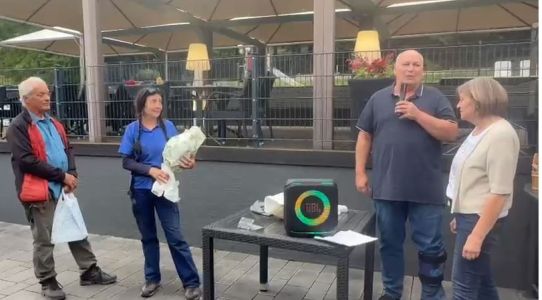 "very emotional speech," Andreas presented them both with