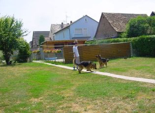 For those people, who do not get the opportunity to visit us because of the far distance, we opened up this new page to show everybody, in which environment their future puppy does grow up for the first 8 weeks. As we already explained on our page "history", our dogs are able to go everywhere around our home and of course from time to time stay with us in the house. Since we cannot take our dogs all at once in the house, we switch them off daily, so every dog will be able to be with the family and children for some time. At this point we want to make sure, that every puppy which leaves our home will be able to live with the new family. We do not mind, that the dog stays outside for several hours, but the dog should be also kept inside of the house. A German Shepherd is a very smart animal. He needs a lot of attention of the new owner and he wants to be with his "pack". Do not forget this important factor, if you choose to have a German Shepherd as your friend. |