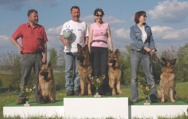 Not only in the ring he does well. His owner passed with him the obedience trial not too long ago. Lasso came in first place. According to his owner he is so good, that he will start to work him in "schutzhund" |