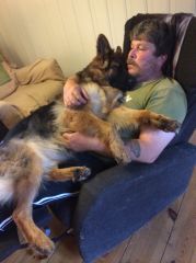 He just came back from the training place. He went there just to watch other dogs being trained. He really was tired  |