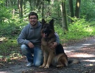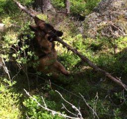 The same goes for her brother Athos. He is doing great. Every day he enjoys life with long walks with his owners and sometime Jana does take him to a training place, but only once in a while. He passed his obedience class a long time ago and now she is doing some "games for his mind". She hides objects and lets him find them. He loves playing these games with her  |