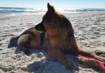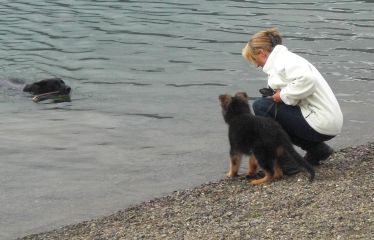 Hundemama took her and Athos to a lake today and it did not take two seconds and Bergere  |