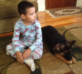 Bruno is doing great and is bringing lots of joy to his owners. What we love about "Buddy-progeny" is their beautiful heads and faces, very masculine  |