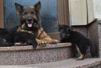 Sire: Buddy vom Kuckucksland, born 17th of May 2007, SchH 3, AD, KKL1, HD-fast normal, ED-normal Show title: V View more pictures on our Buddy-page  |