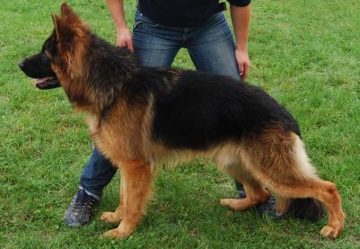 Gait with good hind thrust, correct elbows, good length of the coat and very good pigmentation