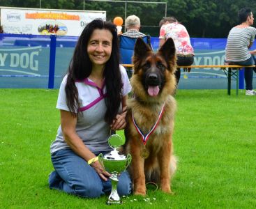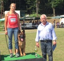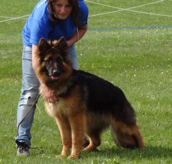 In the show ring she was successful yesterday. She received the title "SG1" Not only was she successful, also her brother Chico. He had been shown at another show two weeks ago and received "SG2" and he also had passed the BH trial yesterday. Congratulations to his owner! It might be, that Chiara together with her half sister Gina will be shown at a Siegershow in Holland this coming July! We will keep you updated |