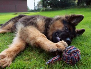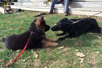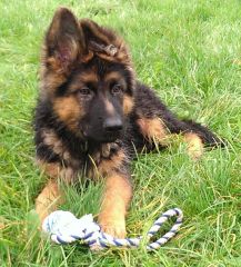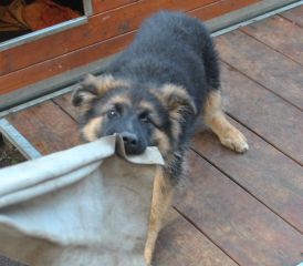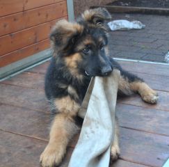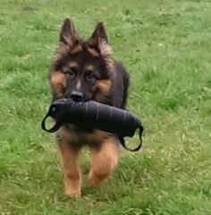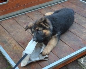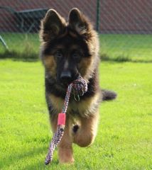 The "Mom" tries to use this play drive to teach her things. She is doing very well. Mom knows, as soon as the teething is over, the puppy will stop with biting. This is just natural behavior for puppies. The owners just have to keep them occupied and play a lot of times tug and war. We call this game. |