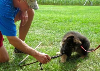 Mom teaches him already how to "heel" with treats. Just great!!!! |