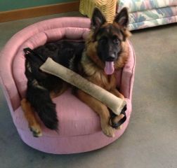 Enja with her nylon bone for big chewers. When ever we are in the USA we bring home a few of these bones. They can be bought at Pet Smart