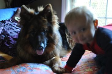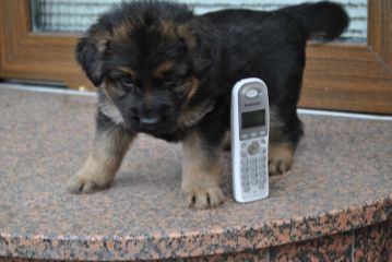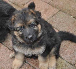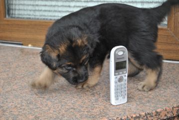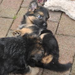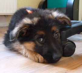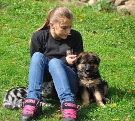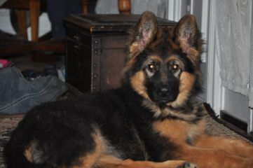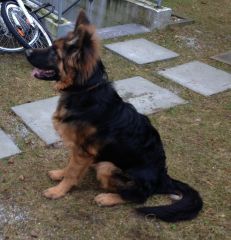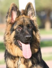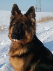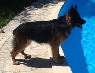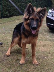 Dam: Indi vom Haus Barrett, born 3rd of June 2009 SchH 1, AD, KKl 1, HD-normal, ED-normal, Show title: SG |