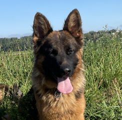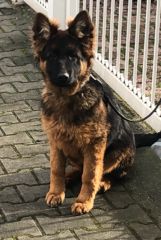 This page had been opened on September 27th, 2021 She had been x-rayed for HD, ED and back not too long ago and received the best results. At this moment she is in training for the BH trial, which hopefully she will be able to pass this fall. In spring of 2022 she is supposed to be trained for IGP 1. If everything goes well according to the planned schedule she should be able to enrich our breeding program in fall of 2022. She does have a very famous father named "Vulkano vom Gebenbacher Land", which just had been presented at the world siegershow in Germany and received the title V 2 in working class. Not only did we keep "Mina" from Vulkano, also the young male Lord, who also is a very good looing male. More pictures of Lord can be viewed here Mina has a very sound temperament. She is fast when she moves. She loves to be exercised by bike. We believe, that her offspring would be great dogs for hiking, rescue and also for agility. Plus they make great family dogs, because they are so lovable, just like the Mom "Bella". Everyone who owns a Bella offspring knows what Hundemama is talking about when it comes to her offsprings. Our plans for her are to pass the BH trial, to present her in one or two shows this fall, to pass with her the endurance trial and IGP in spring and summer of 2022. As soon as we made more pictures or have more news to announce about Mina we will update this page |