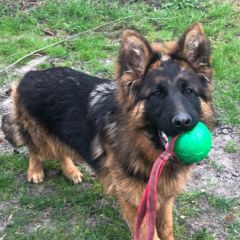 She loves her ball. When a dog has such a nice play drive and loves to eat, the training becomes very easy and is a lot of fun. In the next few weeks we will make a short video clip and post it on our facebook page to show how easy it is to train her, just with positive motivation. She learns so quickly. |