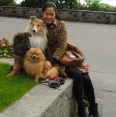 with her puppies  |