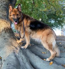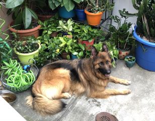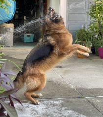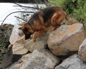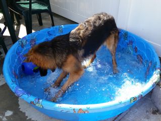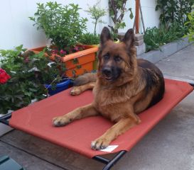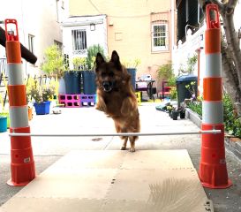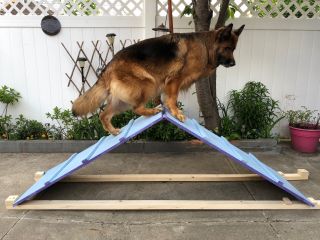 Here we see Skyler. She is living in New York. Her family build her an obstical course to keep her exercised. We think is is just great. A GSD always wants to learn and wants to be exercised!  |