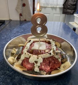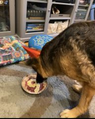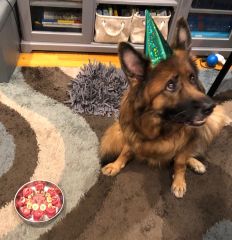 Not too long ago she celebrated her 3rd birthday. Her "Hundemama" baked a big "Doggy cake"  |