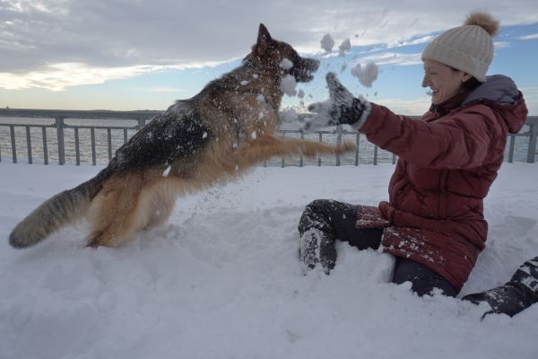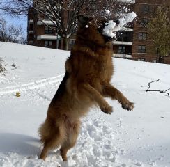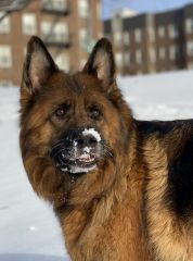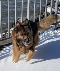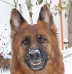 Skyler and her littermates celebrates their 8th birthday not too long ago. Skyler just loves the snow  |