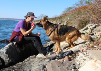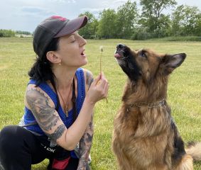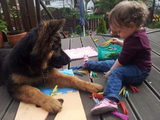but at first it was not too easy, because she wanted to bite in everything she could get a hold off; it has gotten a little better now. She is just a big and beautiful girl  |
