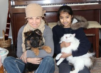The s-puppies have just recently celebrated their fourth birthday. The above pictures show Skyler with her family. They love her so much! They would not want to miss her for one day  |