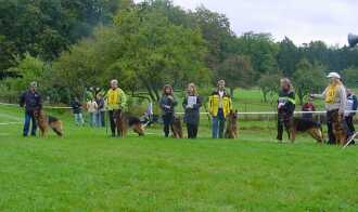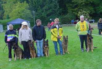 Kennel "Haus Barrett" came in 1st place dogs shown from left to right: Dragon, Thiara-Sue, Cindy, Rusty, Grizzly (unfortunately the owner of Marco had already left at the time this picture was taken) |