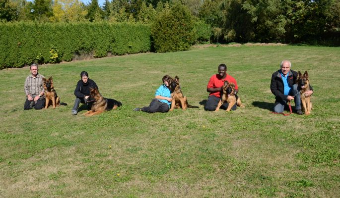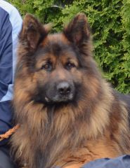 Updated on September 9th, 2012 We presented our 11 year old sire "Tabaluga von Steckenborn" at a show of the SV just a few weeks ago. We even had him registered in the working class. The judge could not believe how he was able to compete with dogs being just 4 years old. If Tabaluga stays healthy we do plan another litter with him at the beginning of next year. The last picture of this update Hundemama had taken of him yesterday during her horse-back ride |