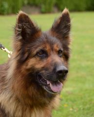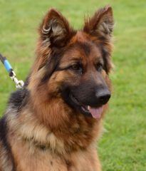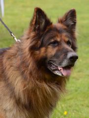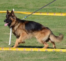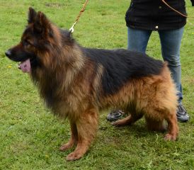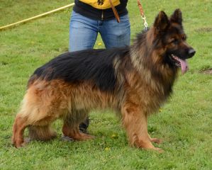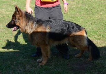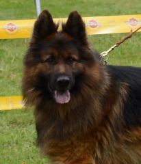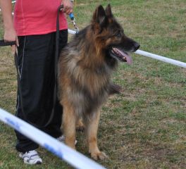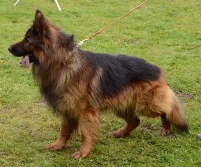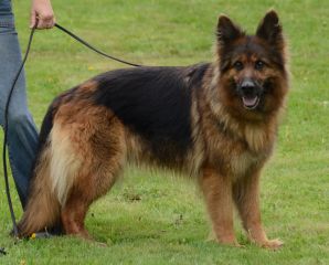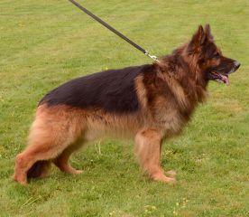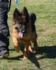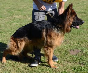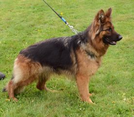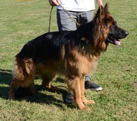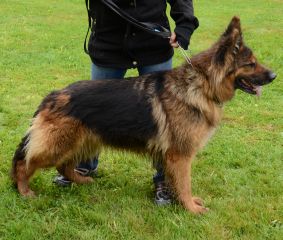 He is a big masculine male with a great head. Borderline for the standard of the GSD He made 1st place |