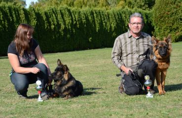 "Breeding class", first and second place, "Funny von der Martinskapelle" with "Nex vom Kuckucksland" |