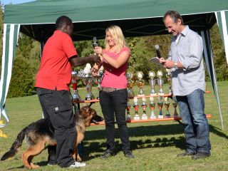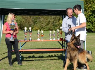 One last picture with the trophy. A vistor out of the USA, who is waiting for a puppy out of the upcoming litters went with us on that day. He enjoyed it very much. |