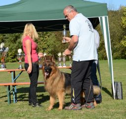 Vonny made last place on that day, because the handler was not able to presented him, so he would be able to show himself. This shows, that the hndler and the dog have to be able to run, escpecially in the breeding class. |