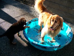 Tacoma is such a funny girl, she loves the water and picks up everything she can play with  |