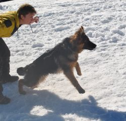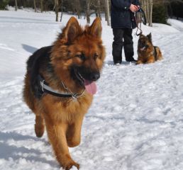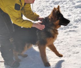 We cross our fingers and give good wishes that he passes. He is currently training for the IPO (Schutzhund/ Protection) services. |