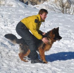Bernd with his well trained Avalanche S & R dog "Alf" |