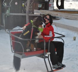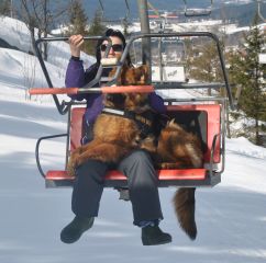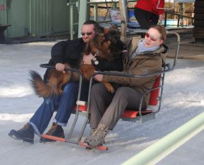 Chair lift riders . Cheyenne takes it "cool" by the ride |