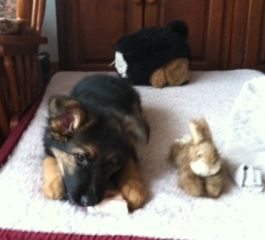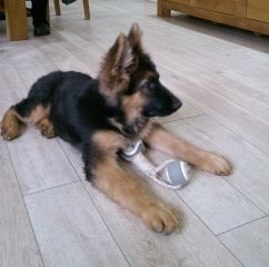 Dam: Indi vom Haus Barrett, born 3rd of June 2009 SchH 1, AD, KKl 1, HD-normal, ED-normal, Show title: SG  |