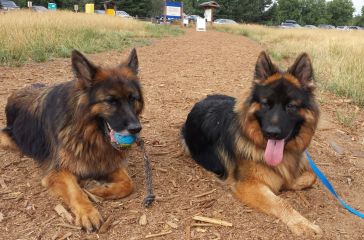 It so happens, that Rumi - a daughter of Romy and Buddy - met at a park in the Seattle area! Boy, the world is so small!  |