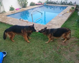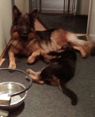 Sire: Yakko vom Haus Barret, born: 15th of Mai 2008 SchH 1 - KKL1, HD-fast normal, ED-normal Pictures of Yakko here and pictures of Funny and Yakko here! |